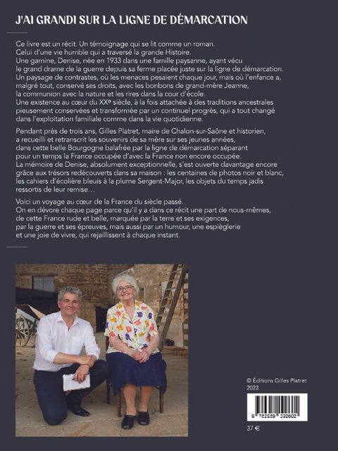Pendant trois ans, Gilles Platret, Maire de Chalon-sur-Saône et historien, a recueilli les souvenirs de sa mère sur sa jeunesse pendant la Seconde Guerre Mondiale, la ferme familiale étant située juste sur la ligne de démarcation... Ce récit, qui se lit comme un roman, vient de sortir dans le format d'un beau livre richement illustré !